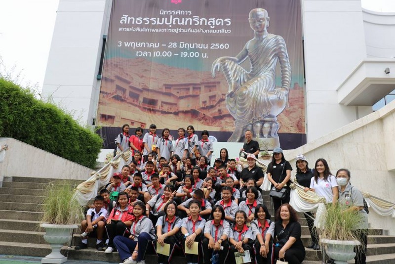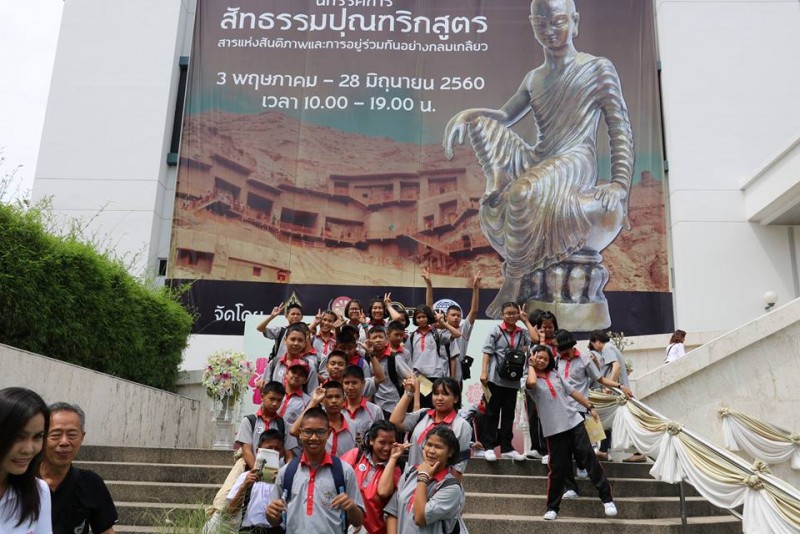 มัยธยมศึกษาดูงานนิทรรศการสัทธรรมปุณฑริกสูตร ศาตร์และสันติภาพและการอยู่ร่วมกันอย่างกลมเกลียว ณ อำเภอปากเกร็ด จังหวัดนนทบุรี