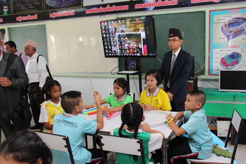 คณะศึกษาดูงานจากประเทศเนปาล เข้าดูการจัดการเรียนการสอนของโรงเรียนแย้มจาดวิชชานุสรณ์